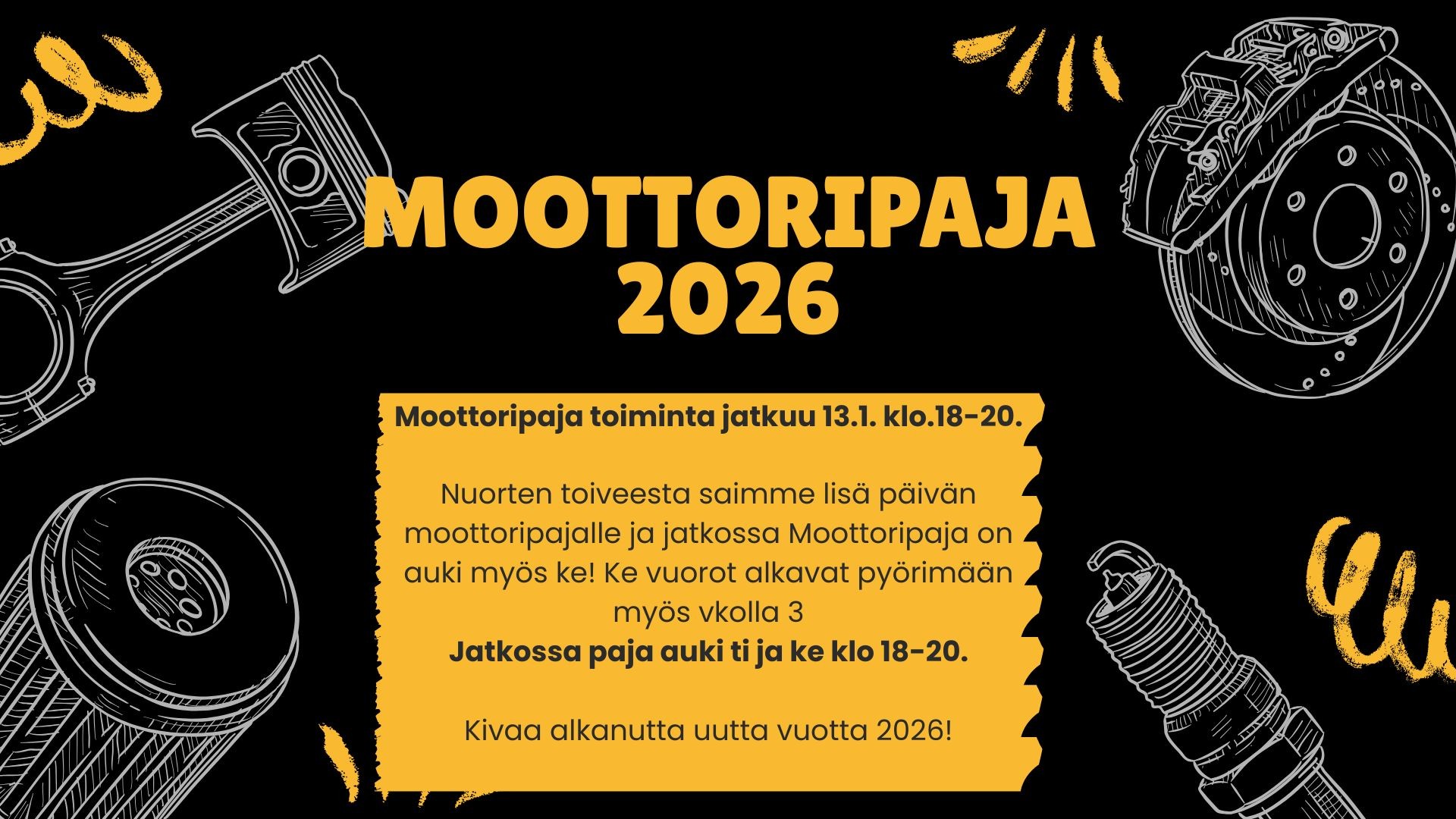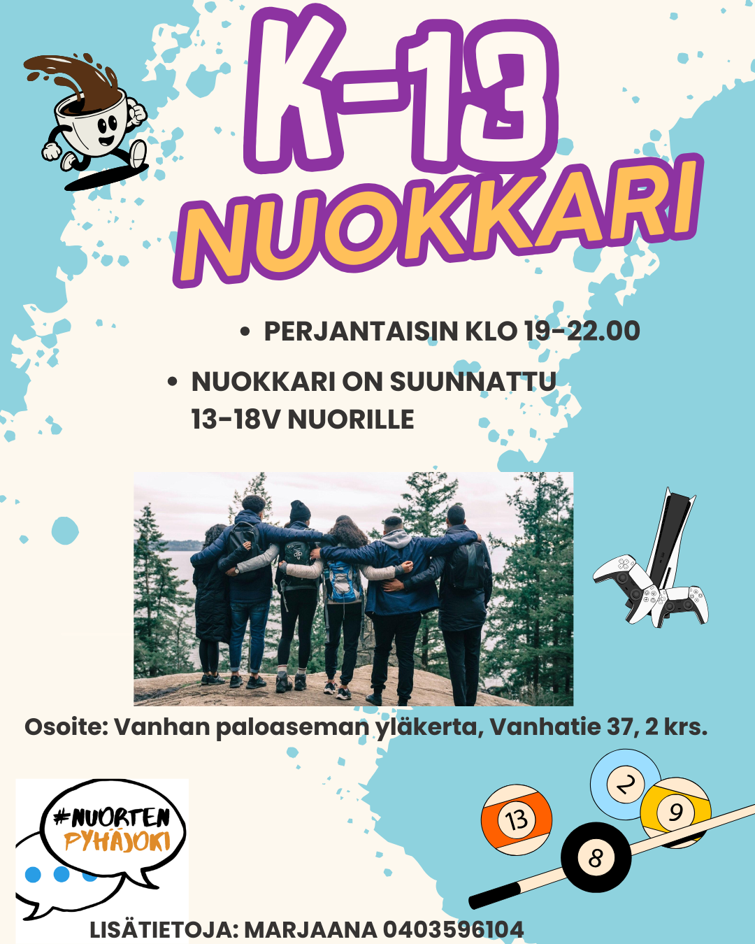 Pyhäjoella tapahtuu Muut tapahtumatNuorten Moottoripaja13.01.2026 - 18:00 Kunnanvarikko Järvisuontie 2 Muut tapahtumatJunnu Nuokkari15.01.2026 - 16:30 Kahveli Muut tapahtumatK-13 Nuokkari16.01.2026 - 19:00 Kahveli Muut tapahtumatNuorisotyön Lauantain avoimet ovet17.01.2026 - 18:00 Kahveli Tapahtumakalenteri
